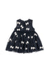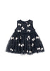 Tulle dress with sequin bows and all-over shimmer effect. Designed with a soft cotton lining and a voluminous skirt. Closes at the neck with a single mother of pearl button.