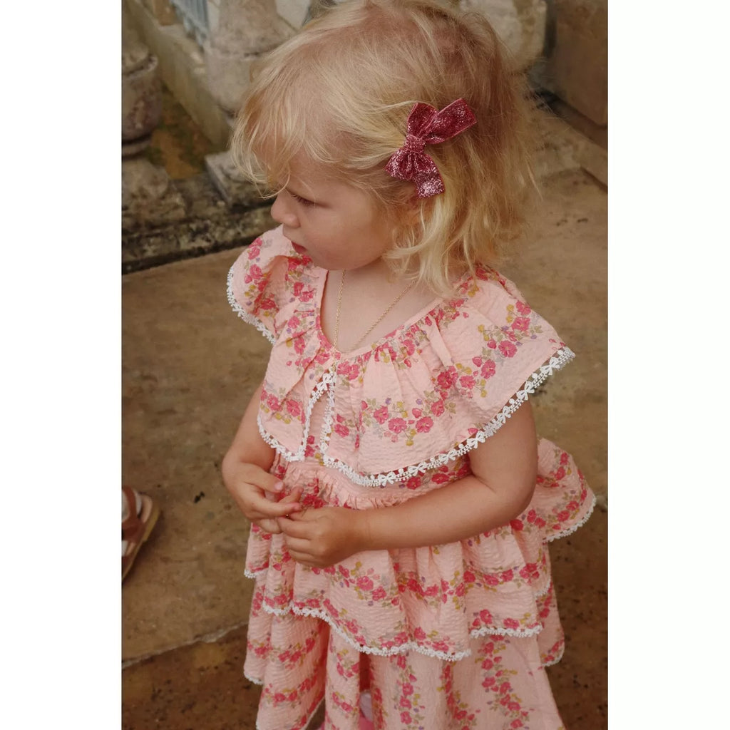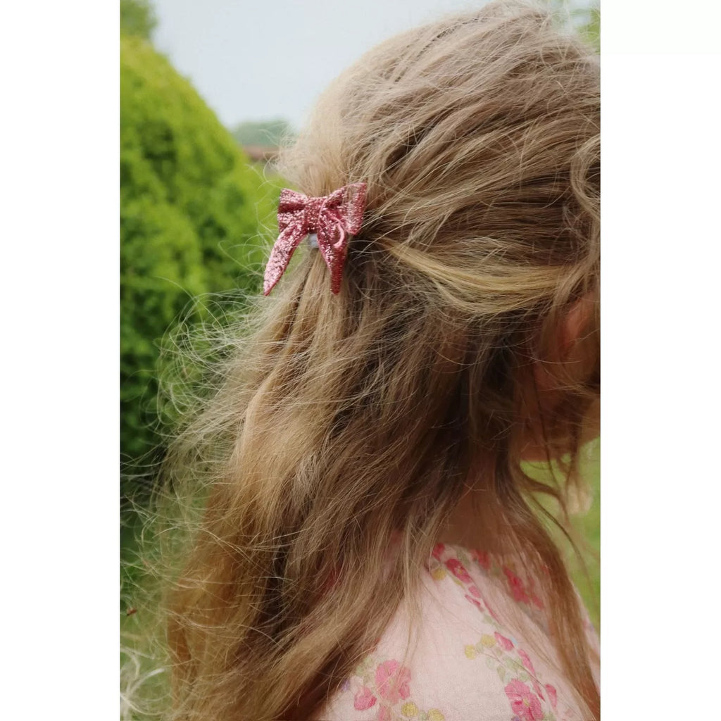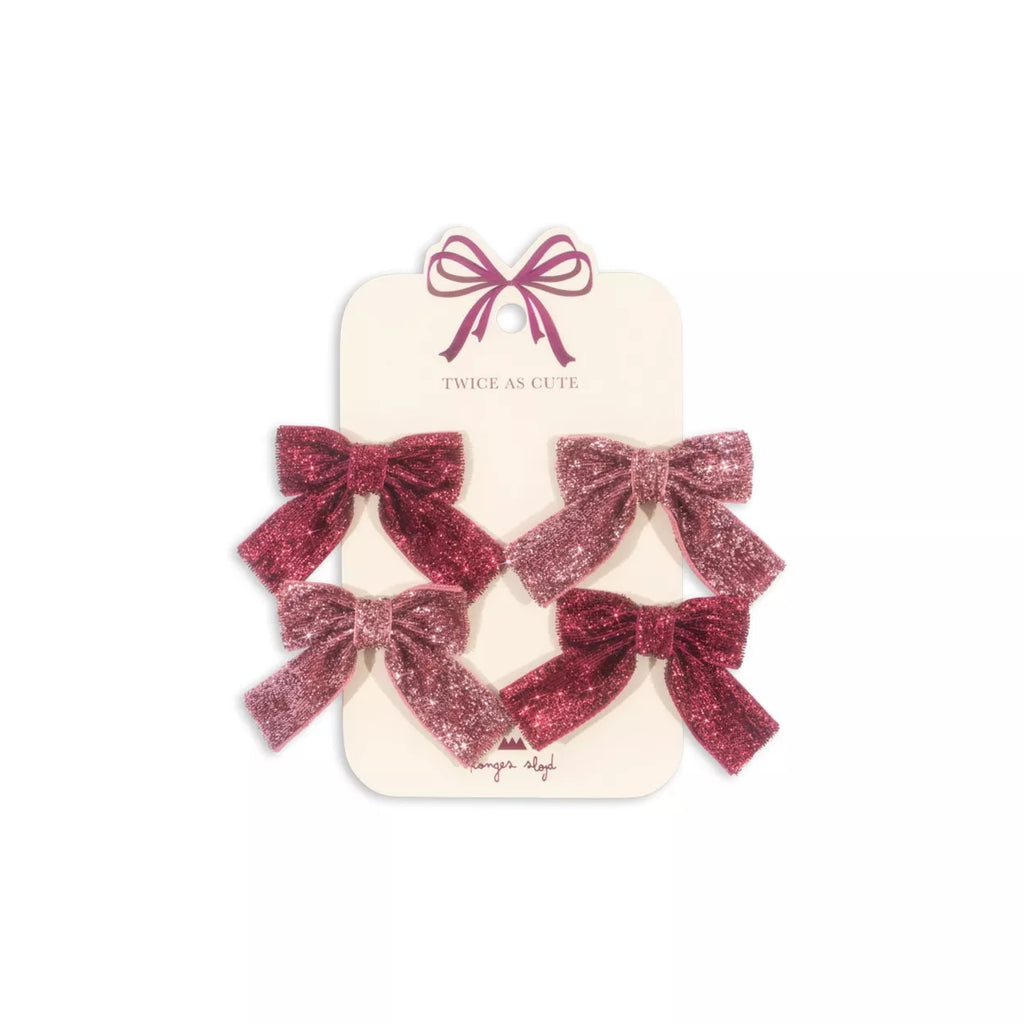 This set of 4 Glitter Bow Pink Mix hair clips are adorable glitter bow-shaped accessories that will add sparkle to any hairstyle. Made from high quality polyester and metal, they offer durability and comfortable wear. Ideal for creating fun and fancy hairstyles for everyday and special occasions.