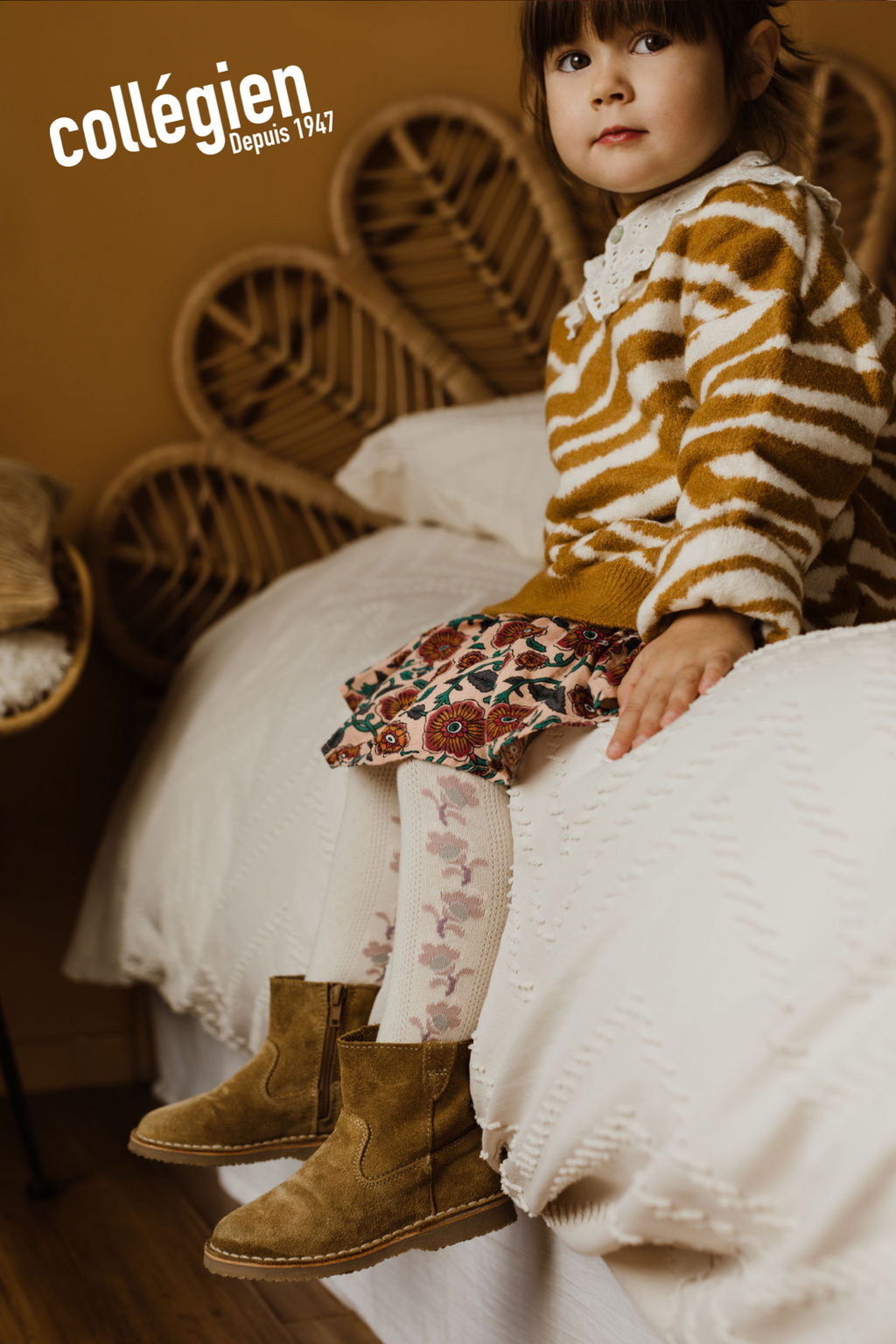 Anthea Jacquard Flower Pointelle Tights (Doux Agneaux)