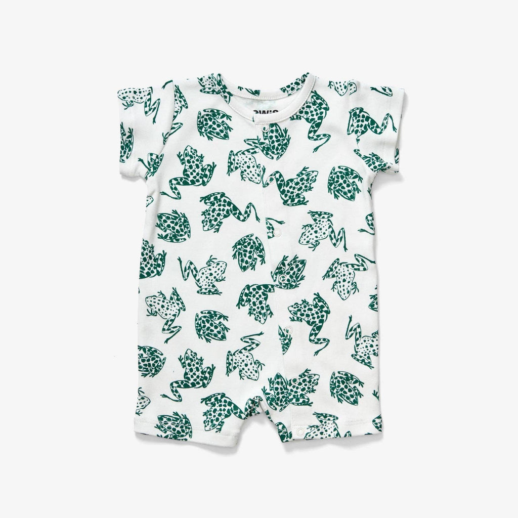 The ideal baby outfit for those hot days when you're out and about. This Romper snaps from collar to thigh, avoiding any tricky over-the-head changing. When frogs are there, they're everywhere. Our Frog print celebrates the delight in seeing them appear, and disappear, at once.