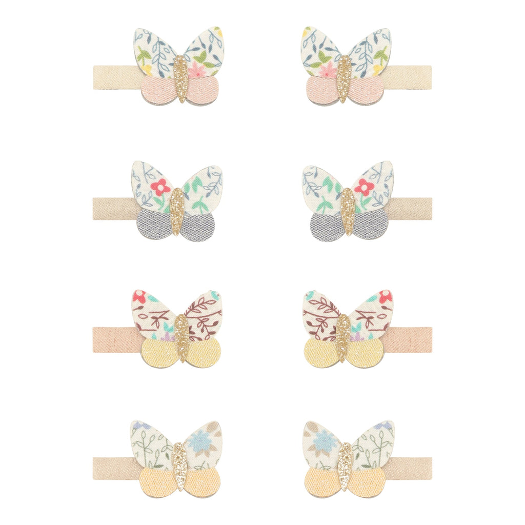 These beautiful new Betty butterfly mini clips are sure to make hearts flutter! Crafted from a fun mix of floral and glitter fabrics, these would look super pretty decorating any 'do!