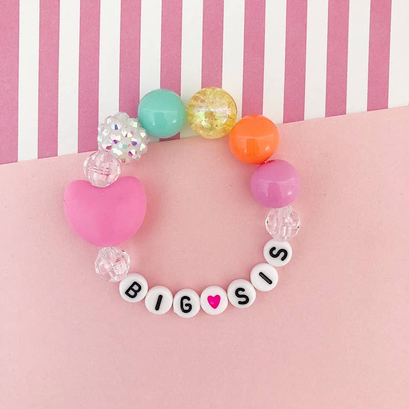 Celebrate sisterhood with these colorful and fun bracelets. Each bracelet is made with chunky silicone and acrylic beads in bright, playful colors and finished with a sweet heart accent. The letter beads spell out BIG SIS or LIL SIS, making these perfect for matching gifts between siblings. Designed to fit most kids up to age 10, these bracelets are lightweight, stretchy, and comfortable for everyday wear. A sweet keepsake for sisters, perfect for birthdays, holidays, or just because!