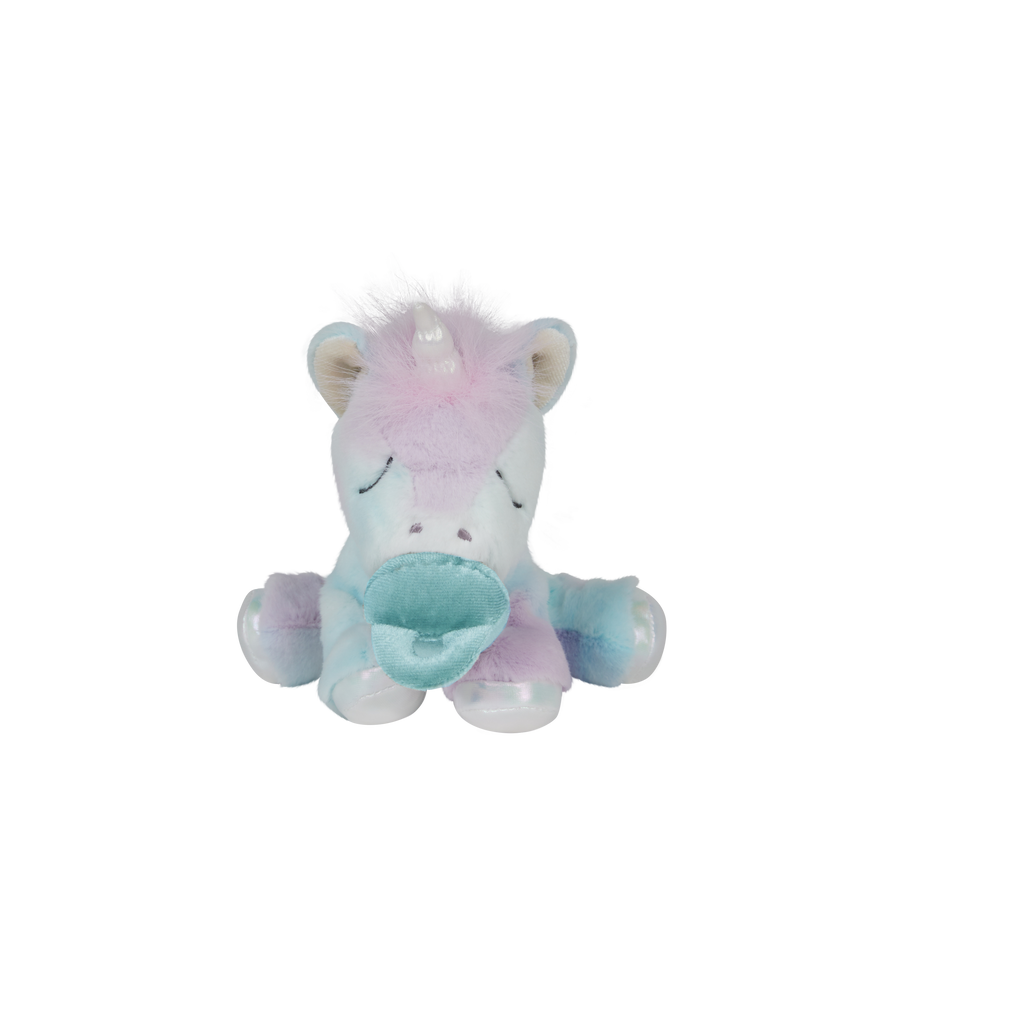 • Soft and cuddly plush outer with rainbow plush tail and mane, and iridescent hooves and horn.