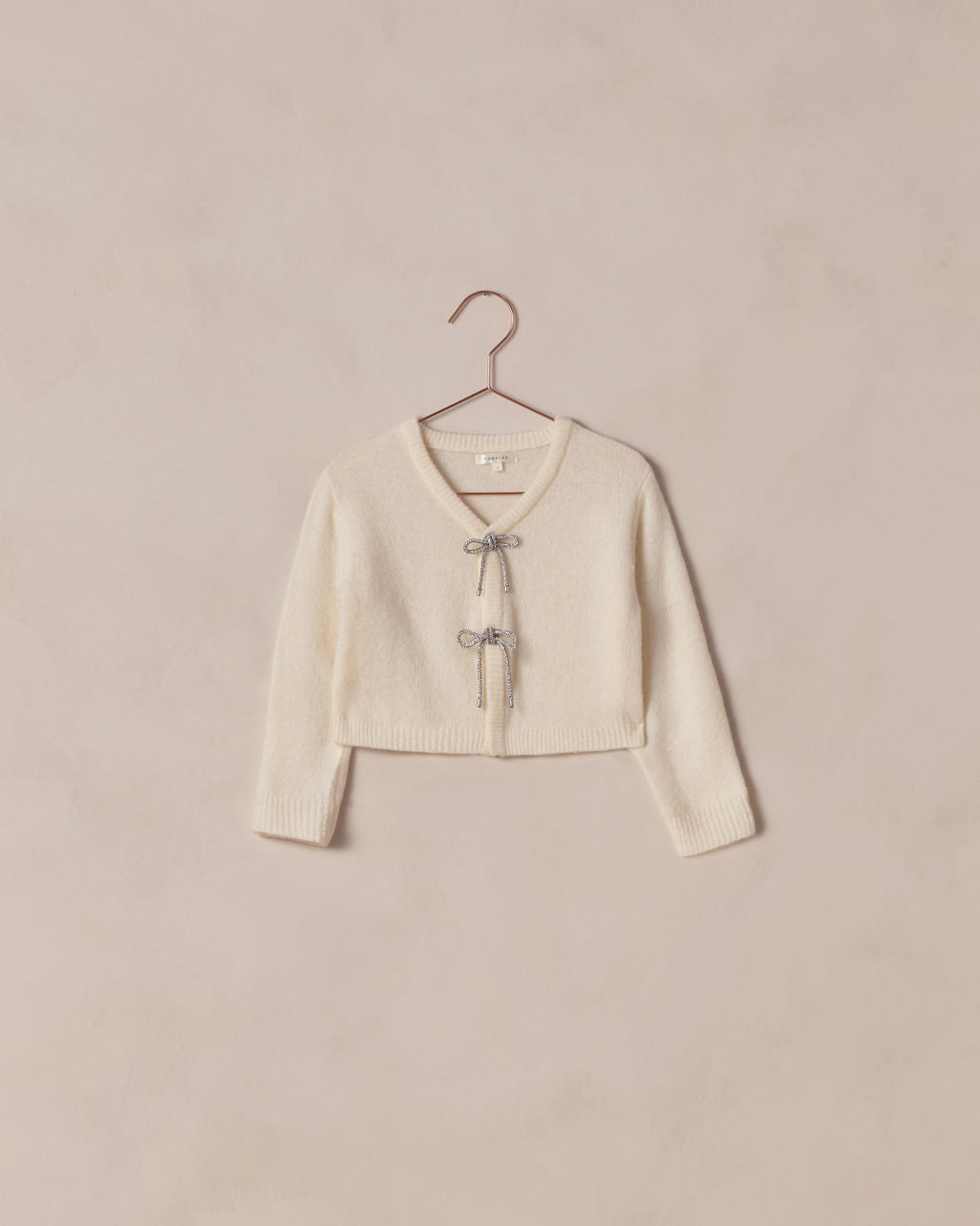 The Bow Cardigan is a sweet layering piece featuring a classic knit body with delicate bow details down the front. Designed for both comfort and charm, it pairs beautifully with holiday dresses or can be worn as a cozy statement piece on its own.