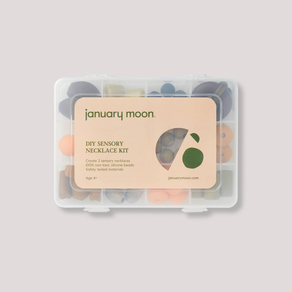 Every mini-maker’s dream come true! Our DIY Sensory Necklace Kits give kiddos a chance to express themselves with elevated, artful materials that last. Each kit contains materials for up to two January Moon Sensory Necklaces including a curated assortment of our sensory friendly, 100% non-toxic silicone beads, pre-threaded clasps, chemical free rope, and detailed instructions. Adult supervision recommended. Best suited for ages 4+.