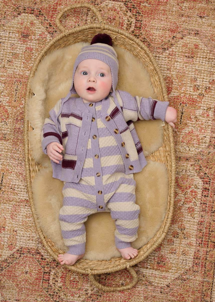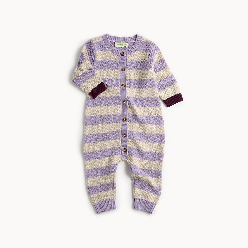 Dress your little one in cozy charm with the Clover Stripe Knit Playsuit. This playful outfit combines gentle stripes with a snug knit fabric, perfect for all-day adventures. Easy to wear and even easier to love, it keeps kids comfy and stylish from playtime to naptime.