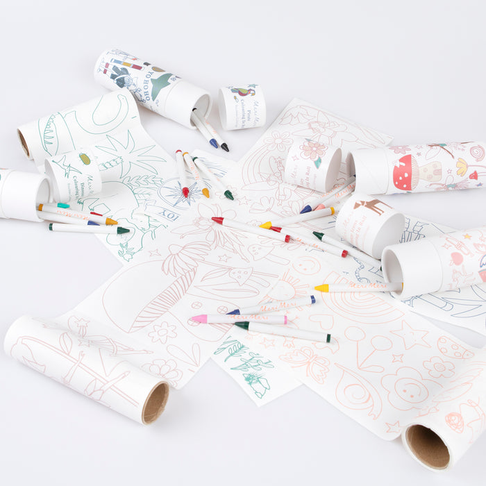 Looking for a creative and entertaining activity for when you're on the go or eating out? You, and your kids, are going to love this special coloring roll! Featuring happy icons to color in, and a set of crayons, it's the perfect gift for hours of imaginative fun. Presented in a colorful tube, keep it in your bag to whip out at times of boredom. It makes a wonderful gift, party activity or favor, or pop into a party bag.