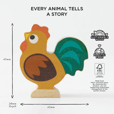 Farmyard fun awaits with this wonderful animal stacking toy, the perfect educational gift for young learners. Comprising nine beautifully crafted animal pieces made from durable FSC® - certified wood, this eco-friendly toy is sure to become a playtime favourite. Each stackable character features a lovely painted design, using water based, child-safe colours and includes all their farmyard favourites, pig, piglet, cow, hen, chicken, sheep, lamb, dog, and a duck. There’s even a handy cotton drawstring bag to keep them safe when not in use. A great toy for developing open ended play.