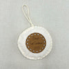 3.5" x 3.5" with cotton loops for hanging. Made from wool felt and filled with organic raw cotton.