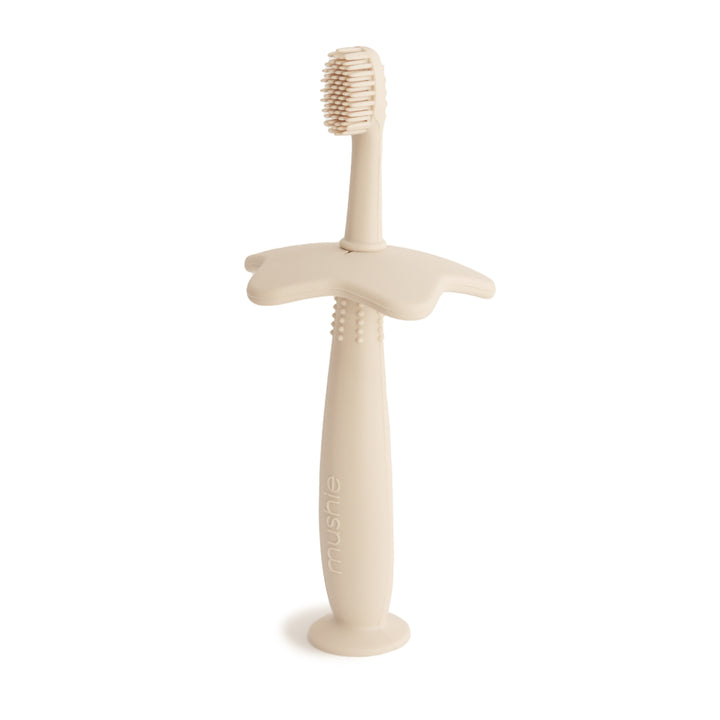 Introduce your little one to brushing independently while building good habits with our playfully designed toothbrush. Made from 100% food grade silicone, this toothbrush is designed with super soft bristles that gently clean and stimulate your little one's gums and teeth.