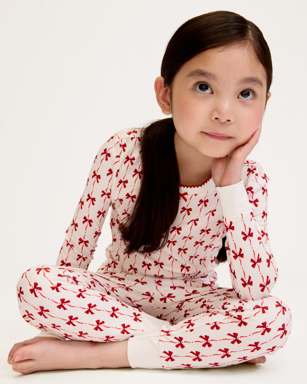Your favorite buttery soft pajamas are ready for all your festive moments. Cheery red bows neatly line this print—an elegant holiday keepsake. This Long Sleeve Top and Pant Set offers a secure, snug fit, allowing freedom of movement for active little ones while providing a perfect silhouette for cooler months. Designed to coordinate with the whole family, the set offers superior comfort, durability, and style points.