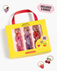 - Includes 3 crystal-cut lip glosses with matching stretchy rings