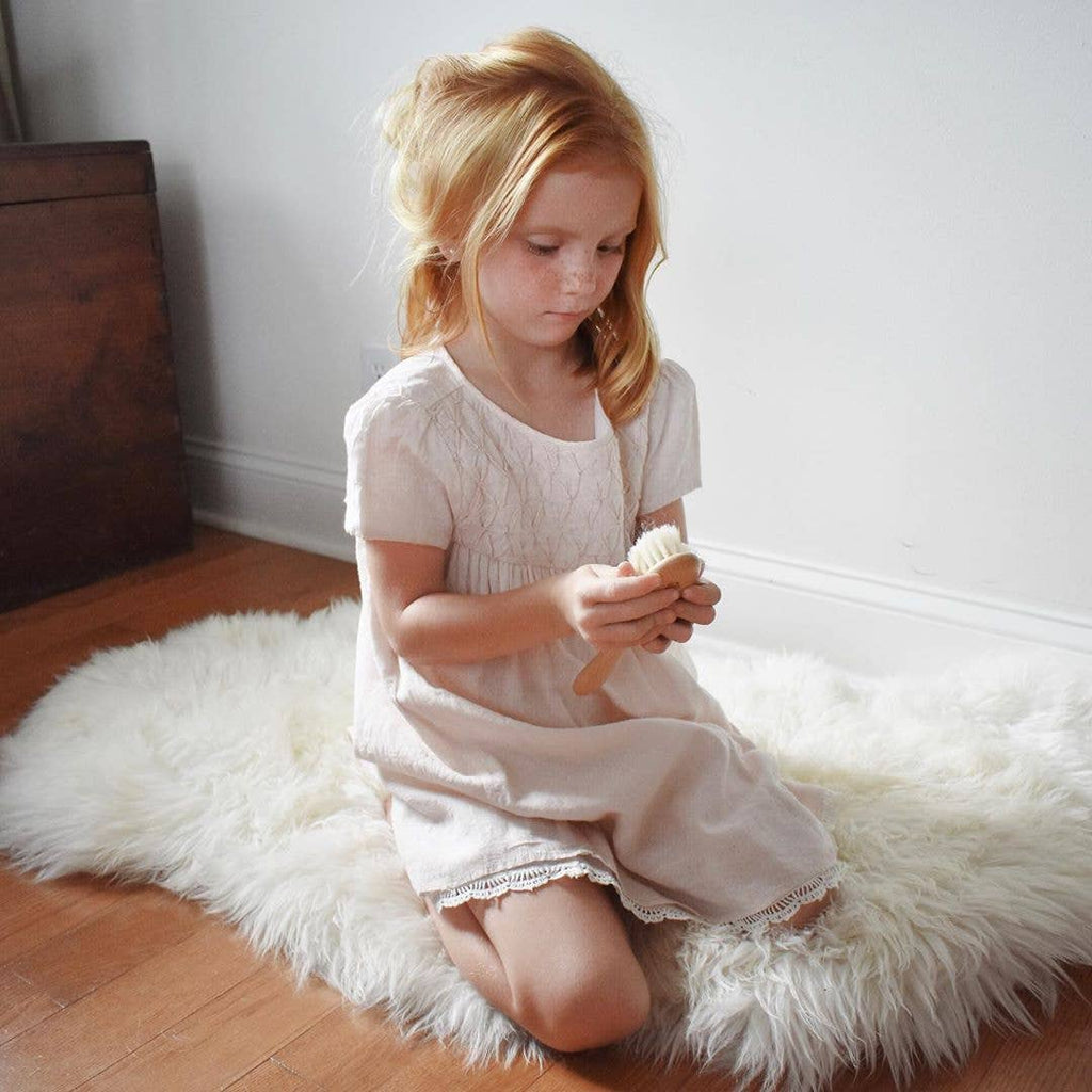 Fephas' goat hair brush is super gentle on newborn´s soft spot, helps remove and prevent cradle cap. It evenly distributes natural oils down the hair shaft conditioning baby´s hair.