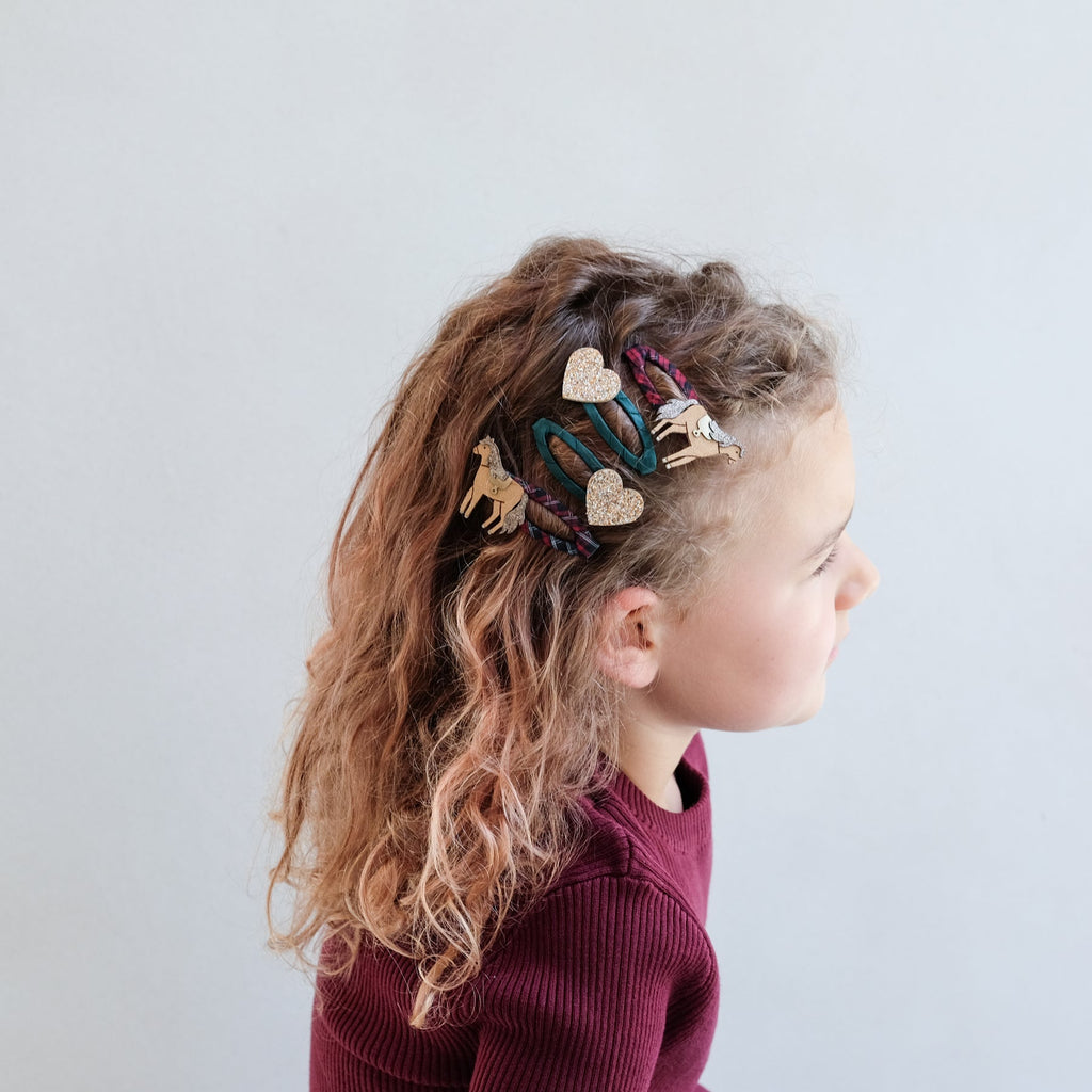 Giddy up and go with these wonderful new Horsey clic clacs! Two pretty ponies and two glittering gold hearts make up this super sweet pack - perfect for pony fans!