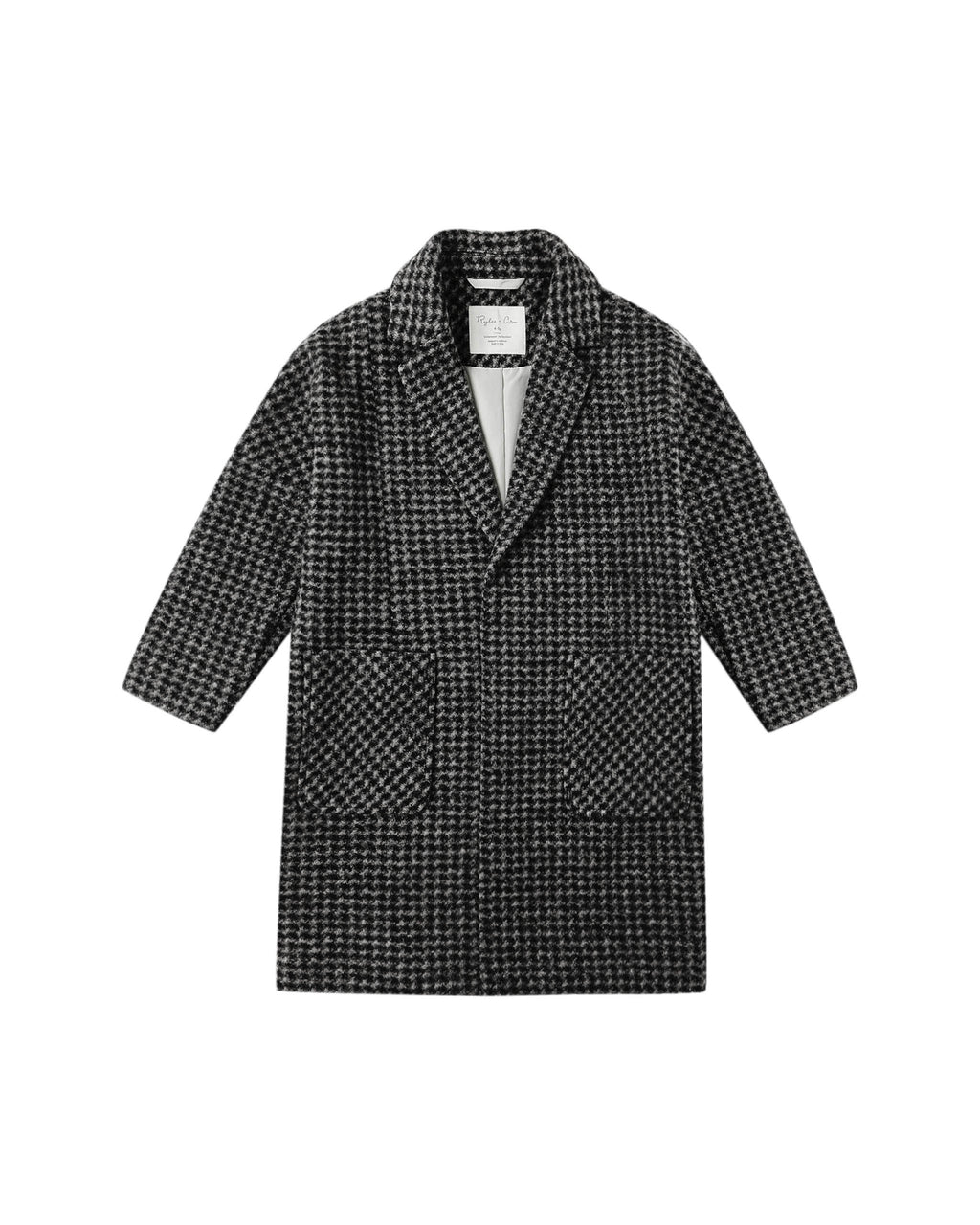 A refined staple for cooler days, this long wool blend coat features a notched collar, dropped shoulder seams, front pockets, and a clean hidden snap closure at the chest.
