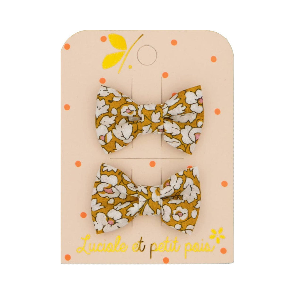 Add a touch of softness to your baby's hair with our bow tie hair clips. Made from Liberty of London Feather Meadow fabric, they combine comfort and style.