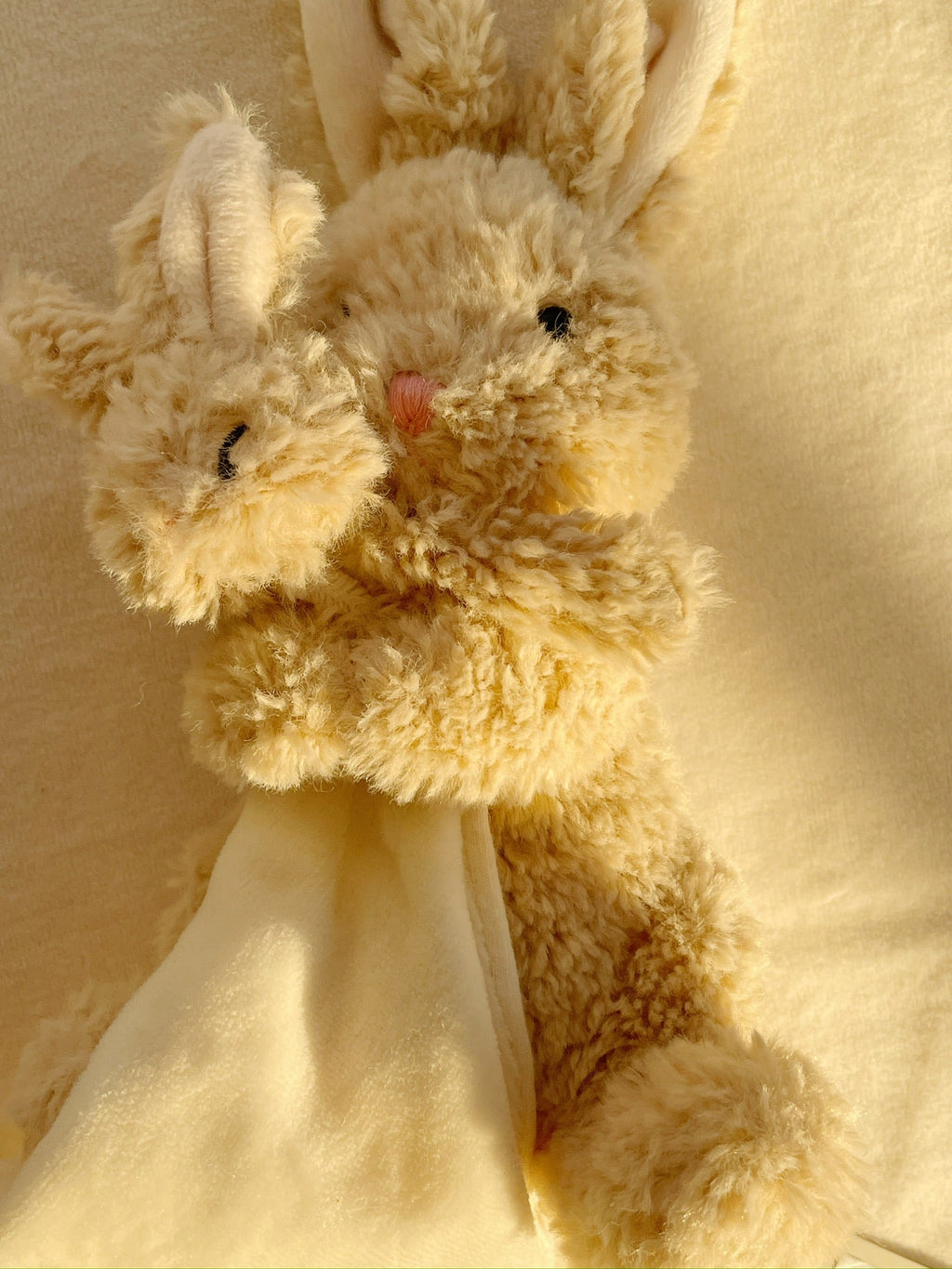 Piccobino is a soft and fluffy rabbit mama that keeps her little bunny safe and snug all day long. Designed to be used as a comforting snuggle teddy for your little one, our Piccobino snuggle toy is safe and comfy to use - day and night.
