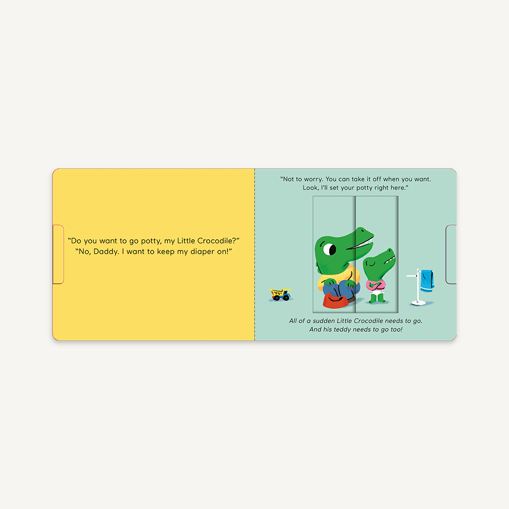 Parents and caregivers can help little ones prepare for this milestone in every child's life with this reassuring pull-tab book. Providing encouragement and empowerment through the gently humorous situations faced by a charming cast of characters, children will recognize that the feelings voiced by Little Crocodile and his friends are similar to their own. Using pull tabs to control the changing pictures, children gain the confidence to apply their newly learned knowledge to their own experiences. A novel and compelling solution to an age-old issue!