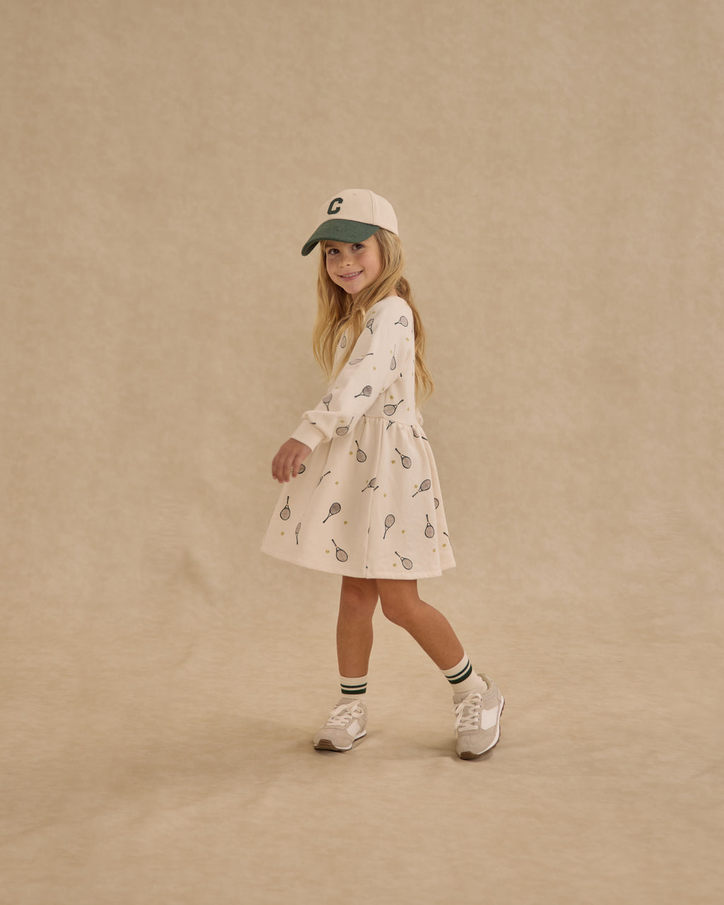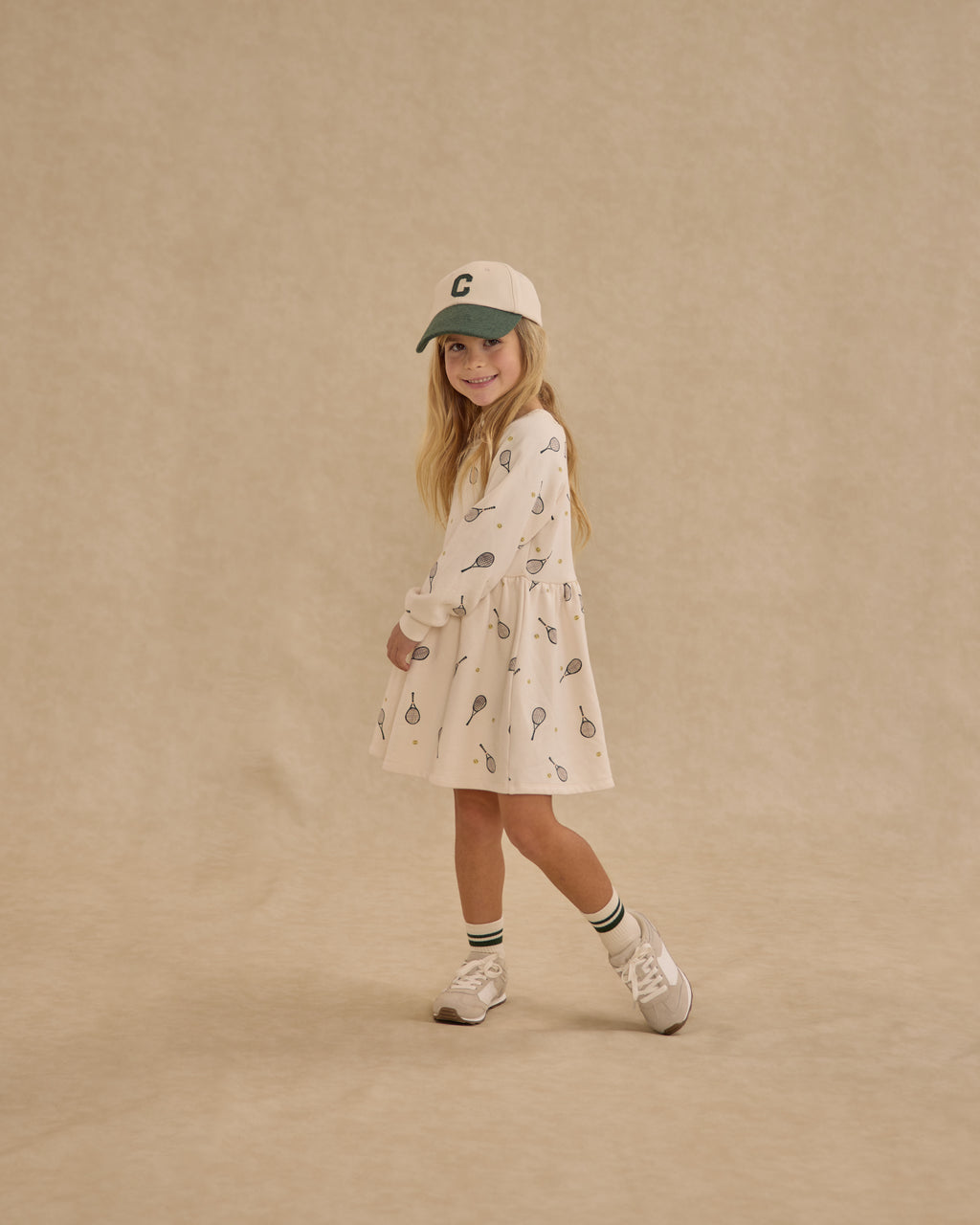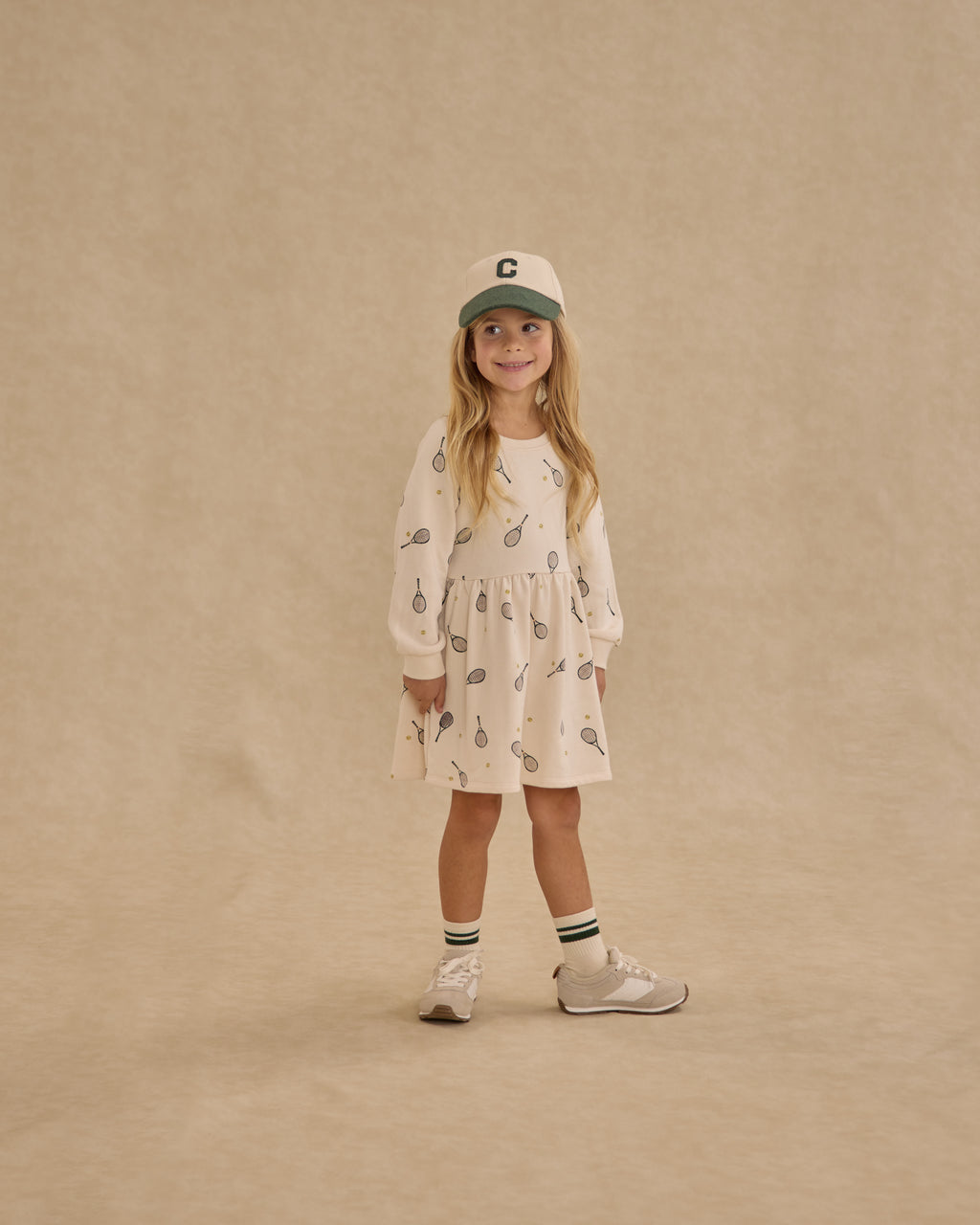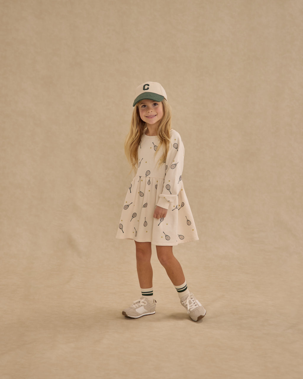 This long sleeve Raglan Dress features ribbed cuffs and neckline, with a gathered skirt for a playful silhouette.
