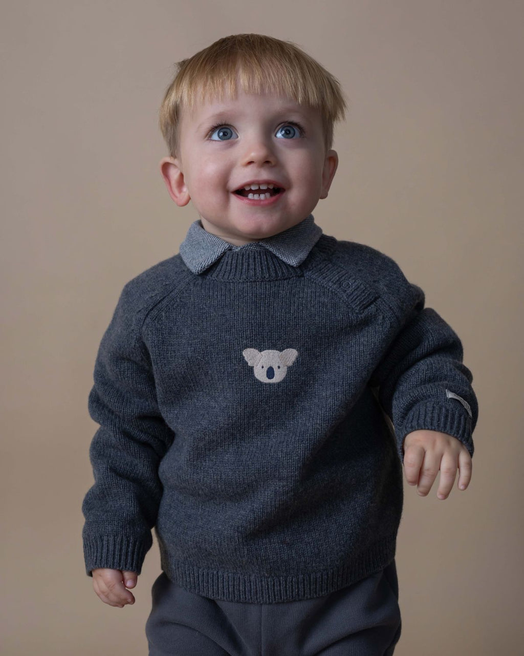 Koala approved! The elegant Sibbe merino wool sweater combines style with cosiness. Crafted from the finest merino wool, this sweater features snap fasteners at the shoulder and a charming embroidered embellishment.