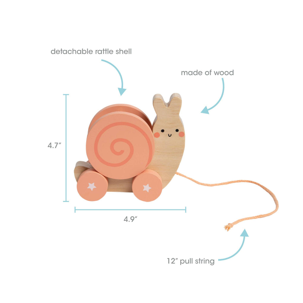 Classic Character Design: This learning toy features 4 wheels and an attached easy to grasp long string to push and pull the friendly snail throughout your home
