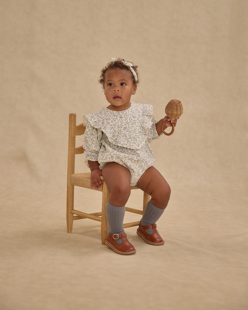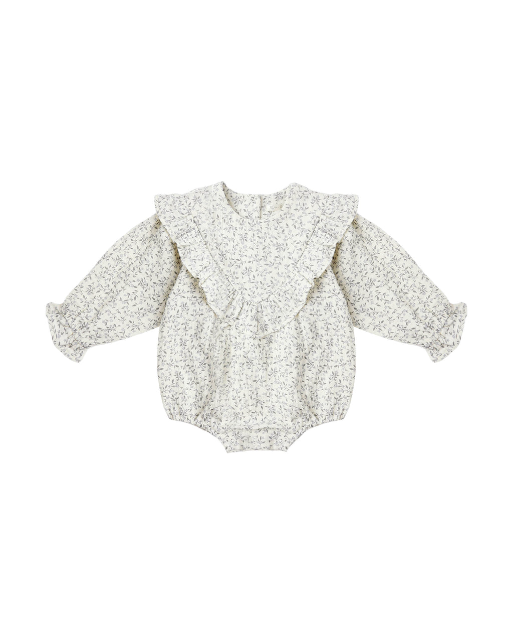 Winnie Romper features darling V ruffle trim, elasticized sleeve and leg openings for a sweet bubble silhouette, and bottom snaps for easy changes.