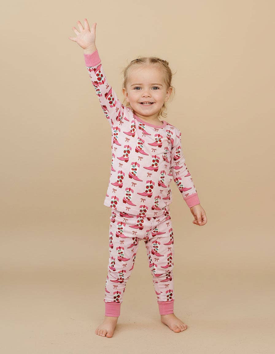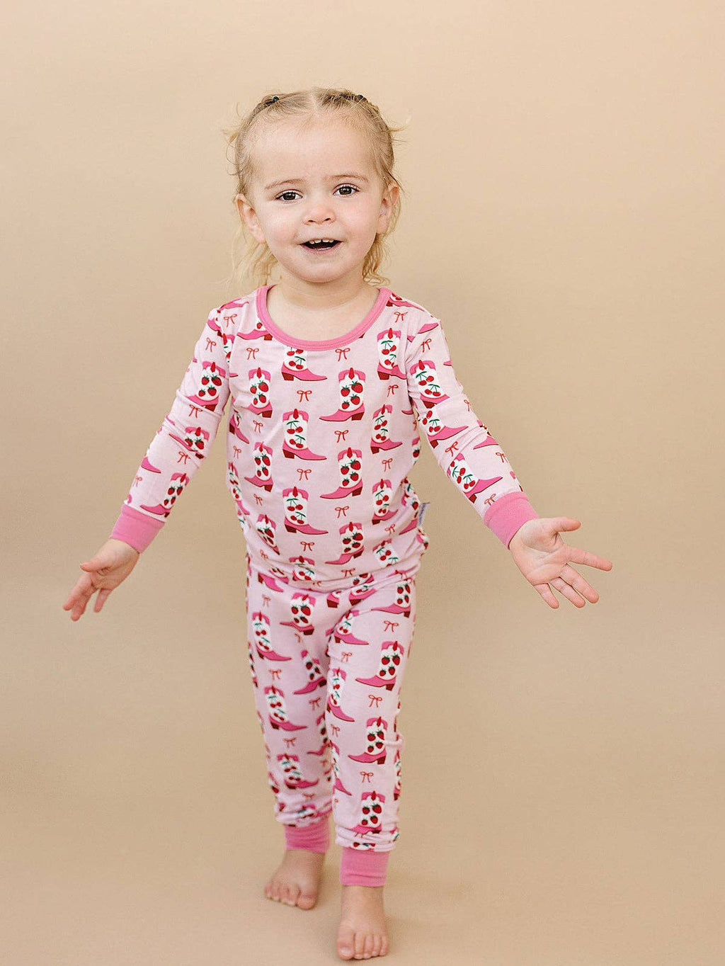 Cozy two-piece homewear set with a fun Bootsberry Cowgirl design. Perfect for bedtime and playtime, this soft set keeps your little one comfortable and stylish all day long.
