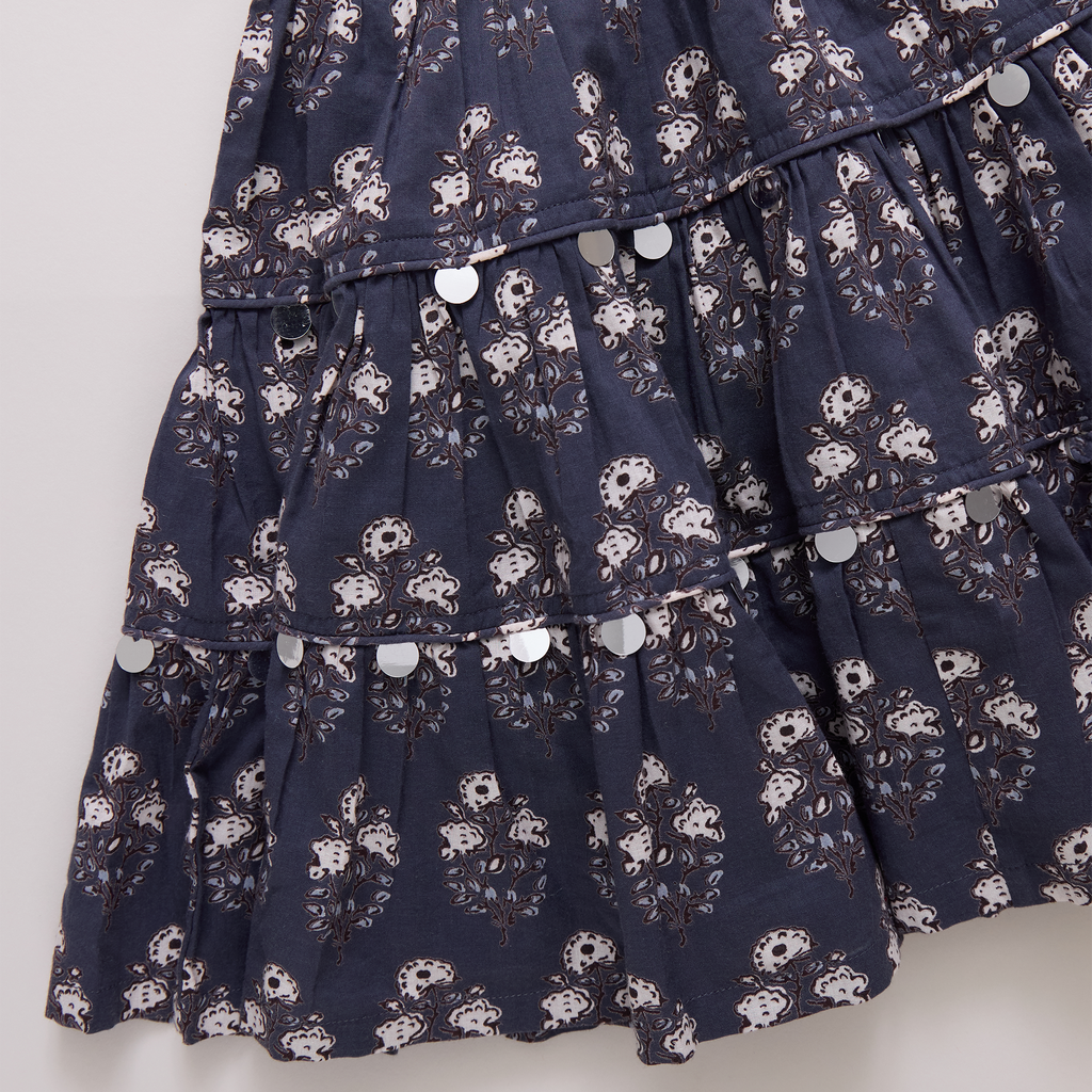 Our Girls Peachy Dress in Navy Strawflower Block Print is pure springtime romance. Fluttery ruffles and vintage-inspired florals create a look that’s as charming as it is playful. Perfectly pairs with the Women’s Sunita Skirt, Women’s Sunita Top, or Women’s Theodore Short in Navy Strawflower Block Print for the sweetest mommy & me moment!
