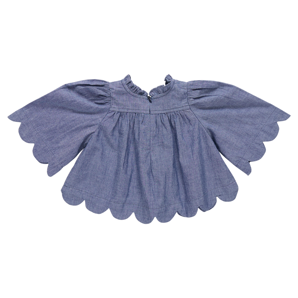 Meet the Misha Top—where style meets playfulness! This charming chambray top features delicate scalloped hems on both the sleeves and bottom, adding a sweet, feminine touch. The hidden invisible zipper makes getting dressed a breeze, while the soft chambray fabric keeps her comfortable all day long. Perfect for school, playdates, or weekend adventures, this top pairs beautifully with everything in her wardrobe.