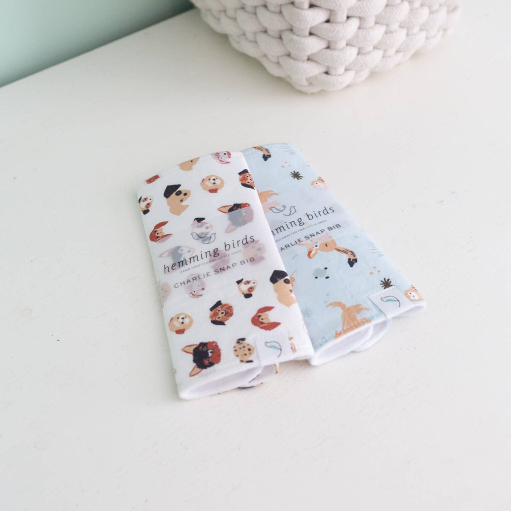 A modern take on a classic parenting essential, "Charlie" Snap Bibs are designed to soak up drool, water, and food. They are soft, absorbent, adorable, and machine washable - making them perfect for mealtime, stroller rides, and baby wearing. A side snap (no velcro!) makes them easy to put on, but hard for baby to remove.