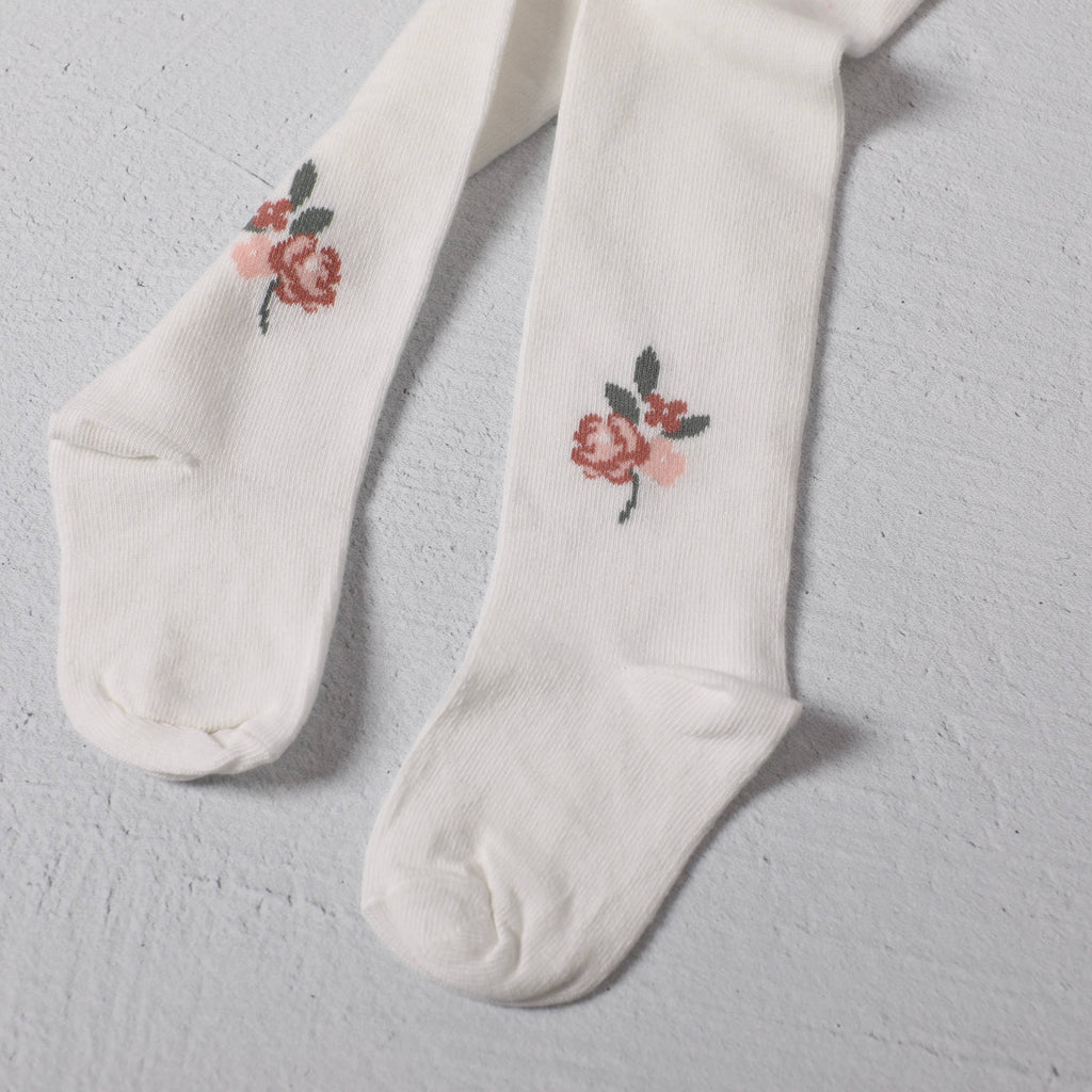 Versatile & chic baby girl tights with elastic waist to ensure a comfy fit. - Adorable floral jacquard motif on the side and contrast pink toe & heel. - Pairs with just about everything, super cute. - Made of organic cotton stretch blend fabric for easy fit and comfort. - Classic and adorable design with meticulous detailing. - Super Soft, lightweight, all-season, cozy and comfy. - Chemical free & non-toxic formulation, eco-friendly. - Ethically made in India. 76% Organic Cotton / 22% Nylon/ 2% Elastane