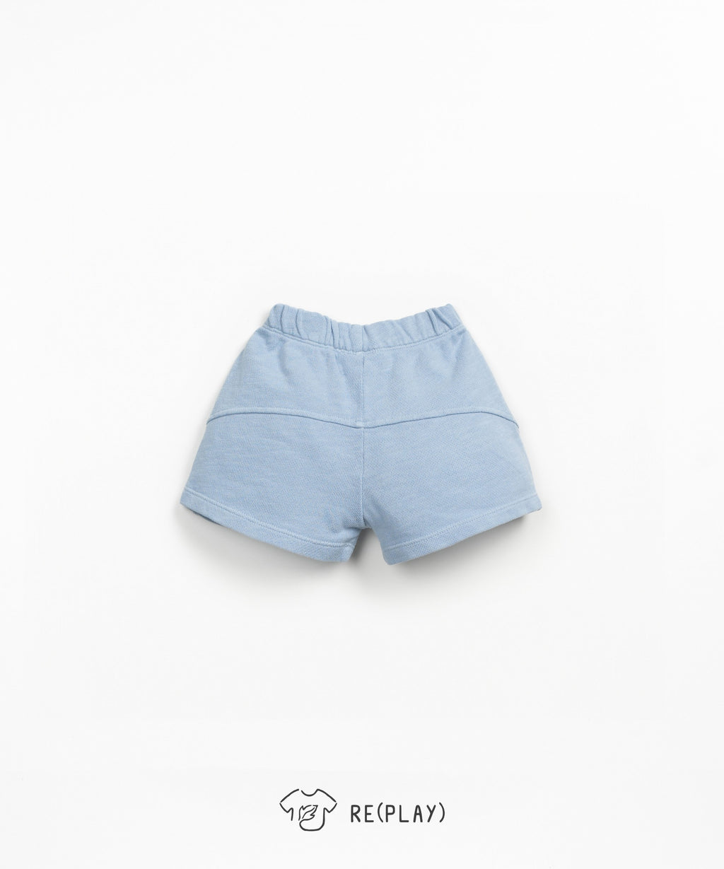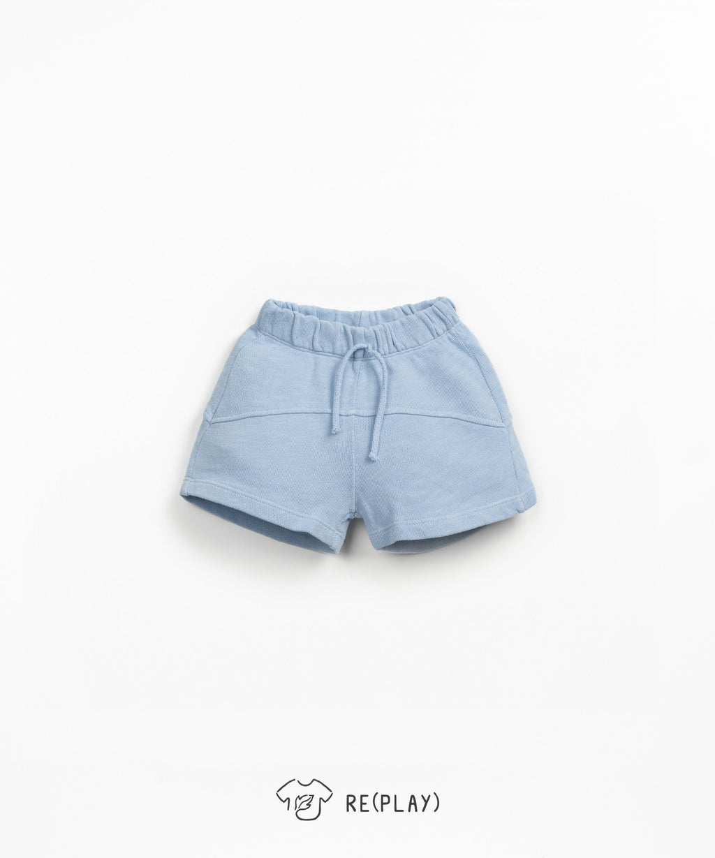 These jersey shorts are made from a blend of organic cotton and cotton, in Rain color. This model features an elastic waistband and a decorative drawstring.