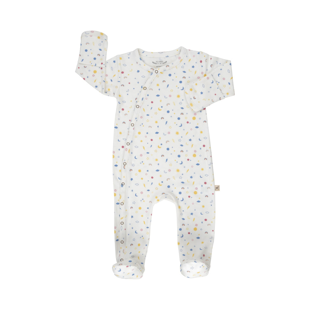 Wrap your little dreamer in the cozy comfort of our Footed Jumpsuit in the charming Sky Dreams design. This ivory-colored jumpsuit keeps tiny toes warm and snug, perfect for playtime adventures or peaceful naps. Soft fabric and footed bottoms ensure your child stays comfy from morning till night, making every moment magical and full of smiles.