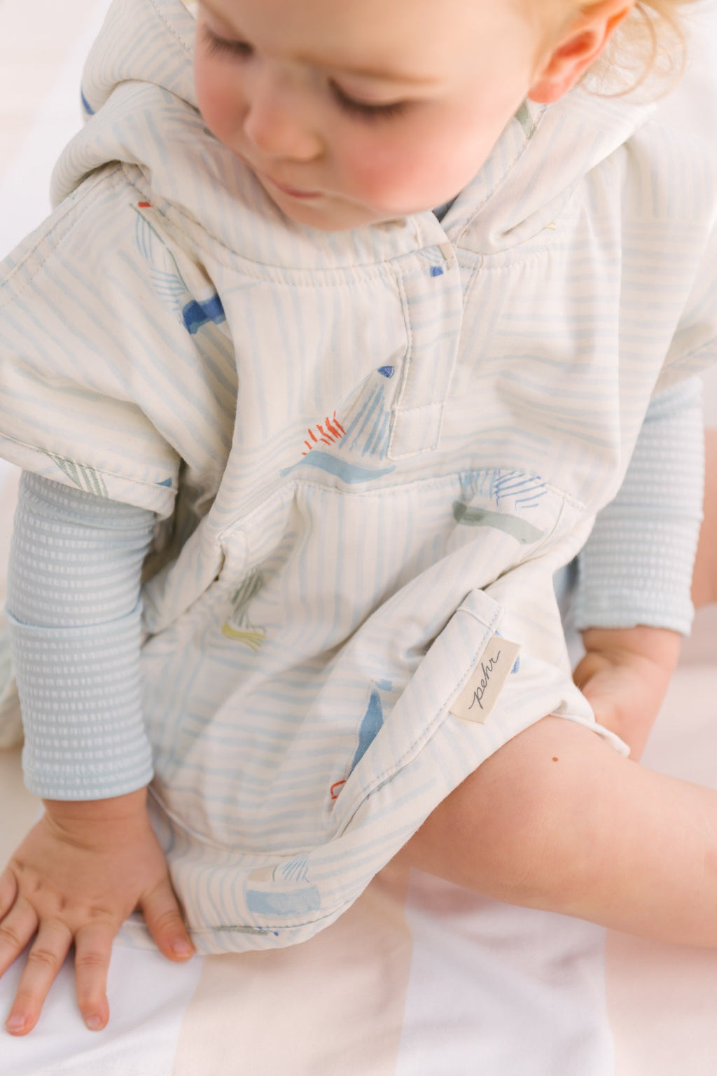 Wrap them in effortless comfort from bath time to beach days with our Hooded Poncho Towel, featuring Pehr’s most-loved prints. Crafted with soft, brushed cotton on the outside and ultra-absorbent terry on the inside, it keeps little ones cozy while making post-water transitions a breeze. Hand-screen-printed with AZO-Free dyes and finished with our signature kangaroo pocket, it’s a go-to essential they’ll want to wear again and again. Pehr it with a Bucket Hat and Swimwear for a perfectly coordinated, sun-ready look.