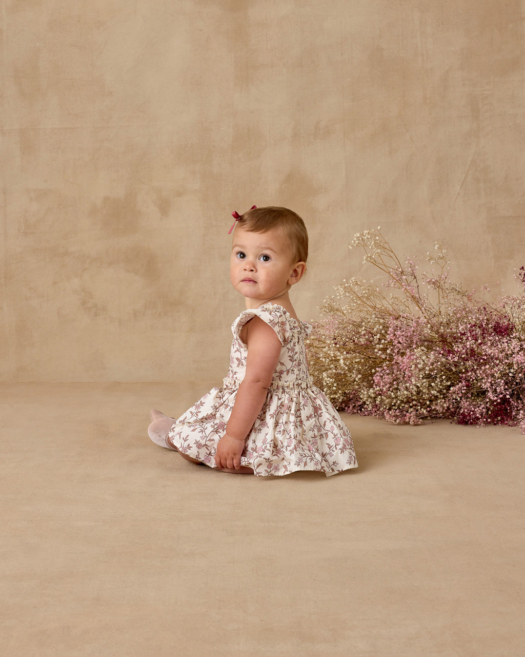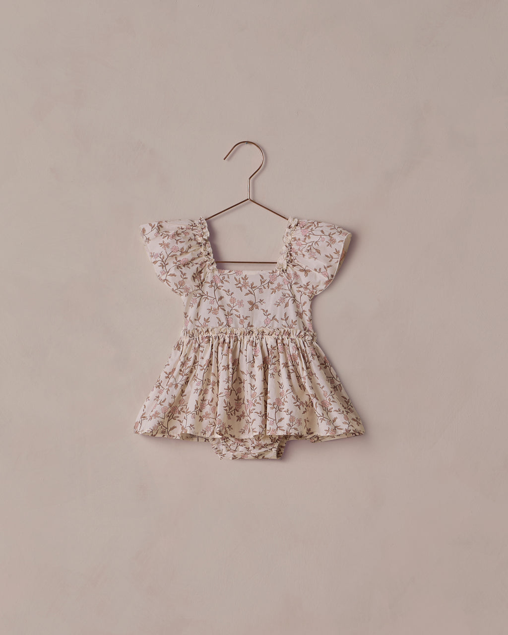 Our Margot Romper is full of delicate charm, featuring flutter sleeves, a softly gathered empire waist, smocking at the back, and a sweet square neckline with ruffle trim. Designed with comfort in mind, it includes elasticized leg openings and snap closures for easy changes—perfect for your littlest one’s special moments.