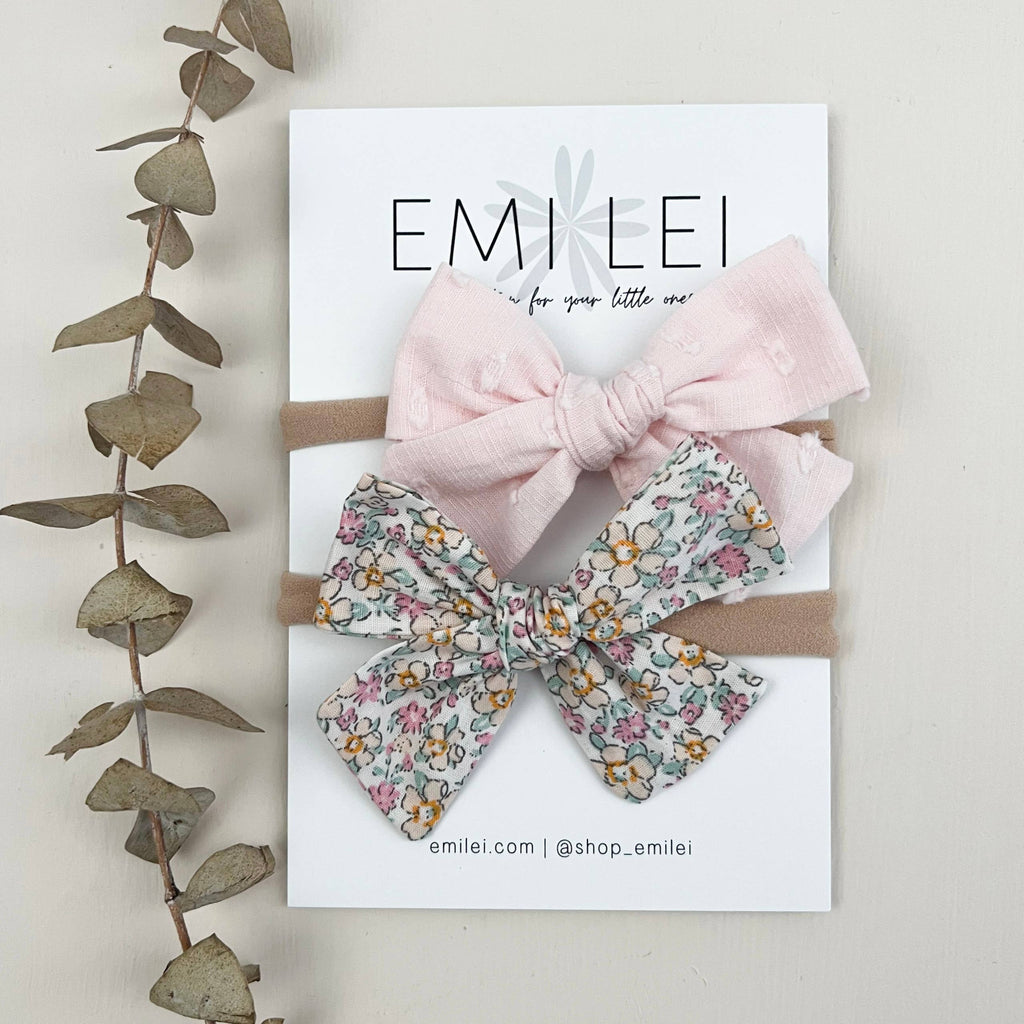 Nylon Stretchy Bow Headband Set (Pastel Floral/Soft Pink)