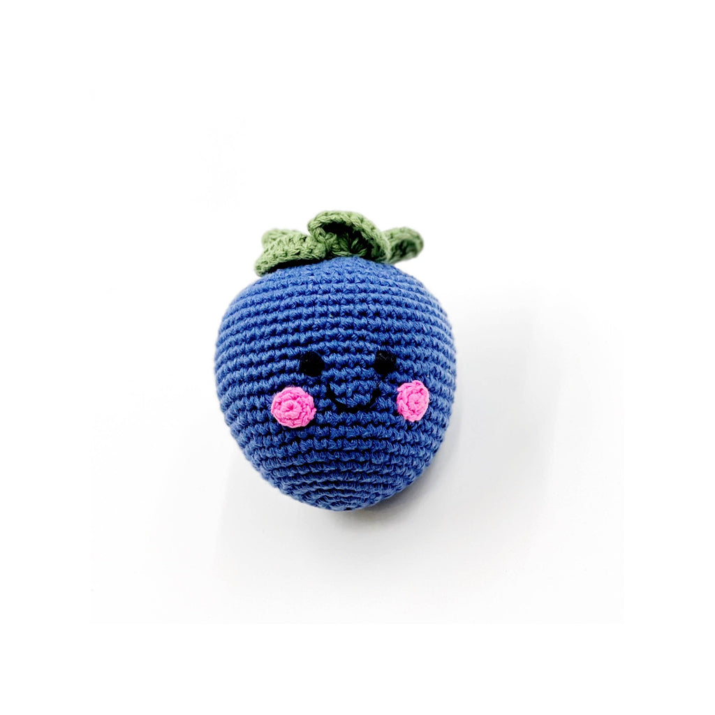Bring summer sweetness to your store with this sweet toy blueberry. Crocheted with organic cotton yarn, this handmade baby toy fits perfectly into tiny hands and makes a soft jingle when shaken. Makes an adorable gift topper for baby showers or a pop of color for the toy box. This kids toy is irresistible to hands of all ages.