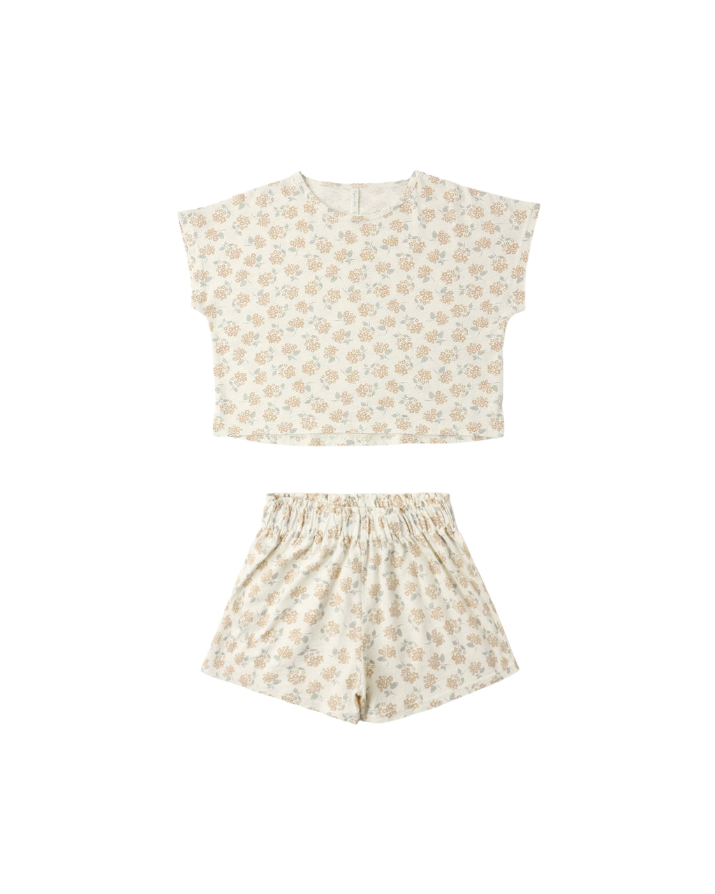 This comfortable jersey set comes with a short sleeve top, and coordinating shorts with an elastic waistline.