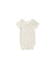 Short sleeve onesie, with a cute ruffled collar. All sizes have snaps at the inseam for easy changing.