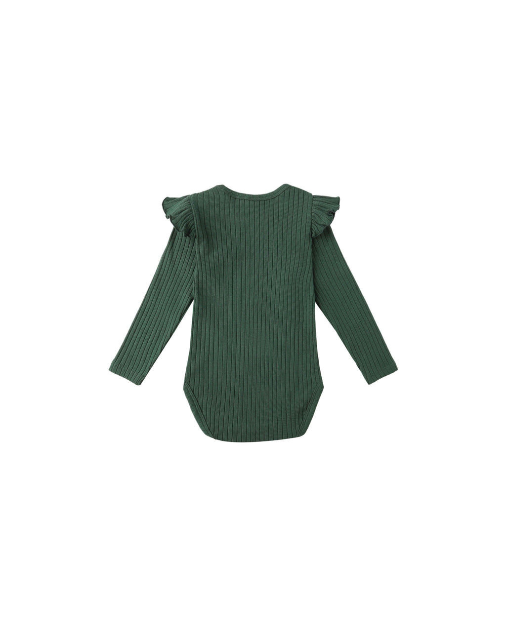 This long sleeve bodysuit is a must-have for your little gal this season! Designed with sweet shoulder ruffles and snaps at the neck and bottom for easy changes. Pair with our leggings to complete the look.