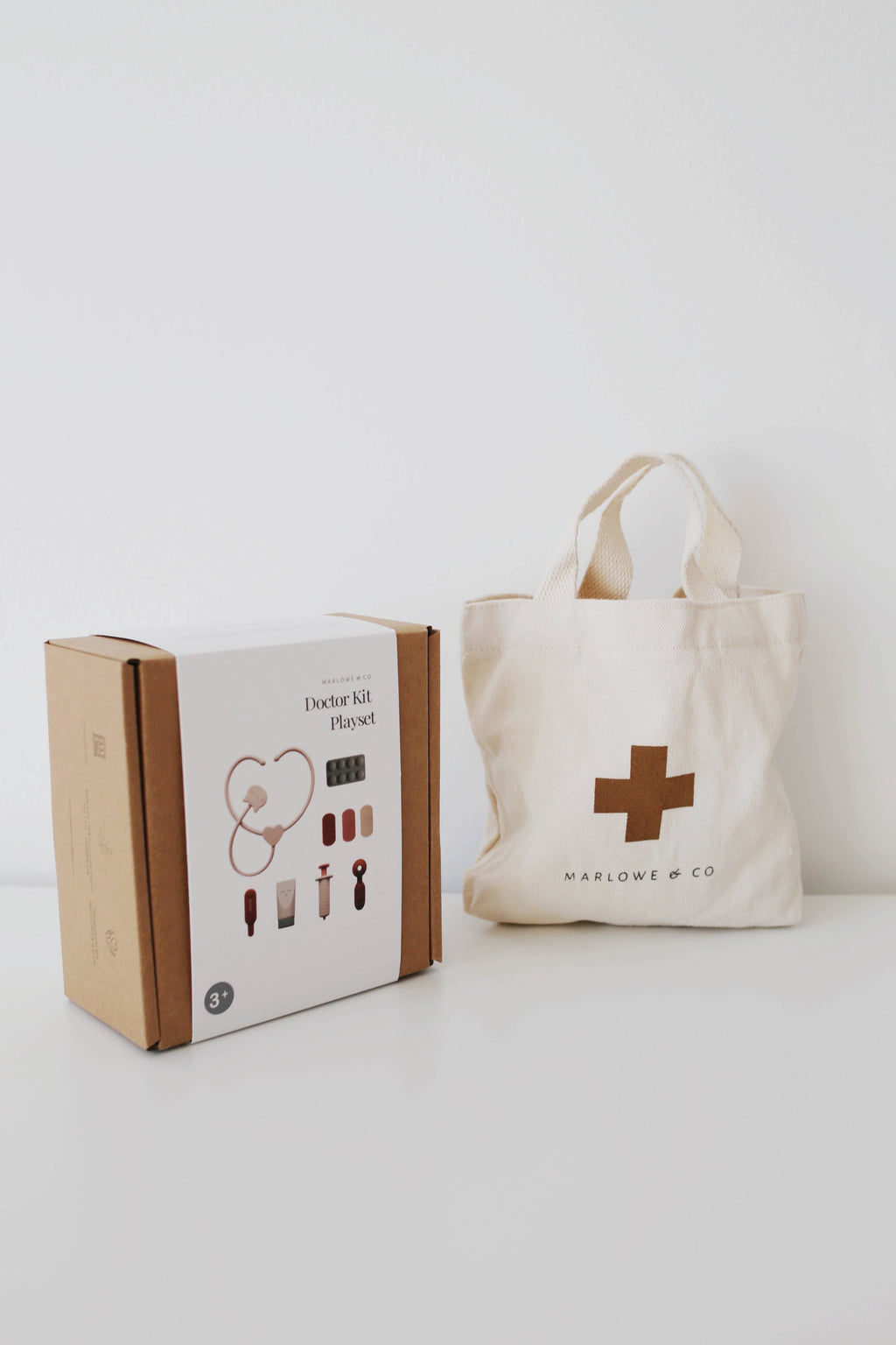 Marlowe & Co's silicone doctor kit is an open-ended toy designed to spark imaginative play and introduce your child to the world of healthcare! This set is perfect to help teach your little one about medical tools and help prepare your child for real life experiences at the doctor’s office. Everything fits nicely in an adorable cotton tote for convenience and storage and is packaged in a gift-able box.