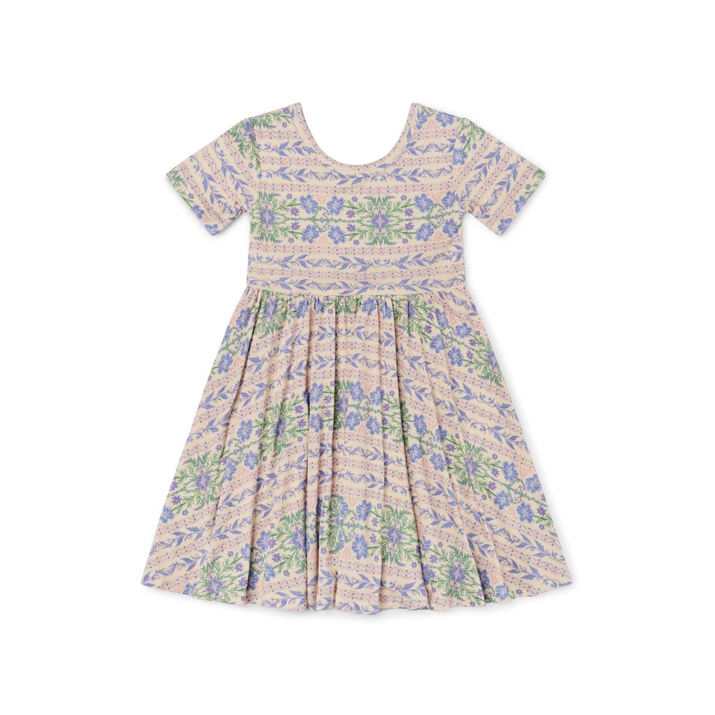 Our short-sleeve twirl dress is made from our luxuriously soft bamboo fabric. Featuring a classic design and a spin-worthy skirt, it’s sure to be a favorite for your little one. Its tag-free design makes it ideal for even the most sensitive skin.