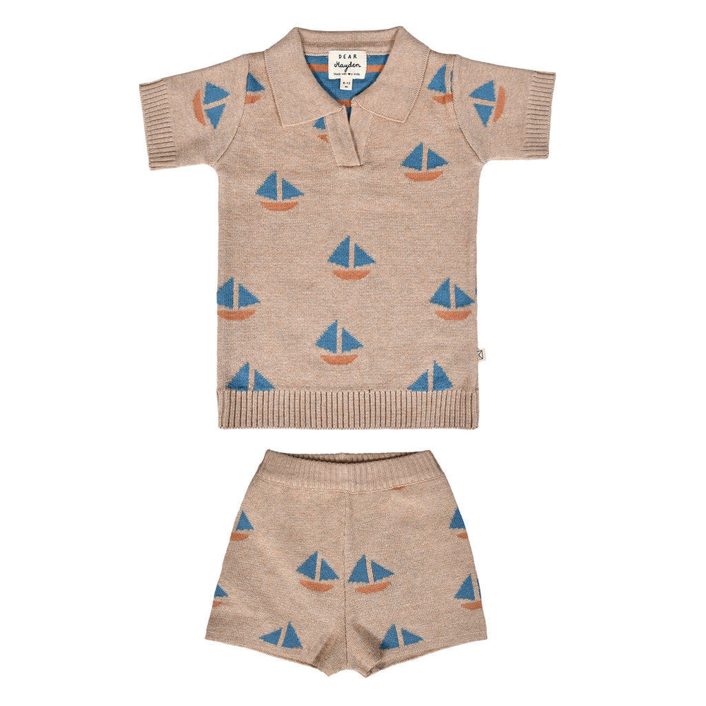 The Theo Knit Short is a warm-weather essential with a playful twist. Crafted from 100% organic cotton in our signature soft knit, it features a subtle geometric sailboat pattern that adds just the right amount of charm. The relaxed fit makes for easy movement and all-day comfort, whether they’re building sandcastles or exploring the backyard.