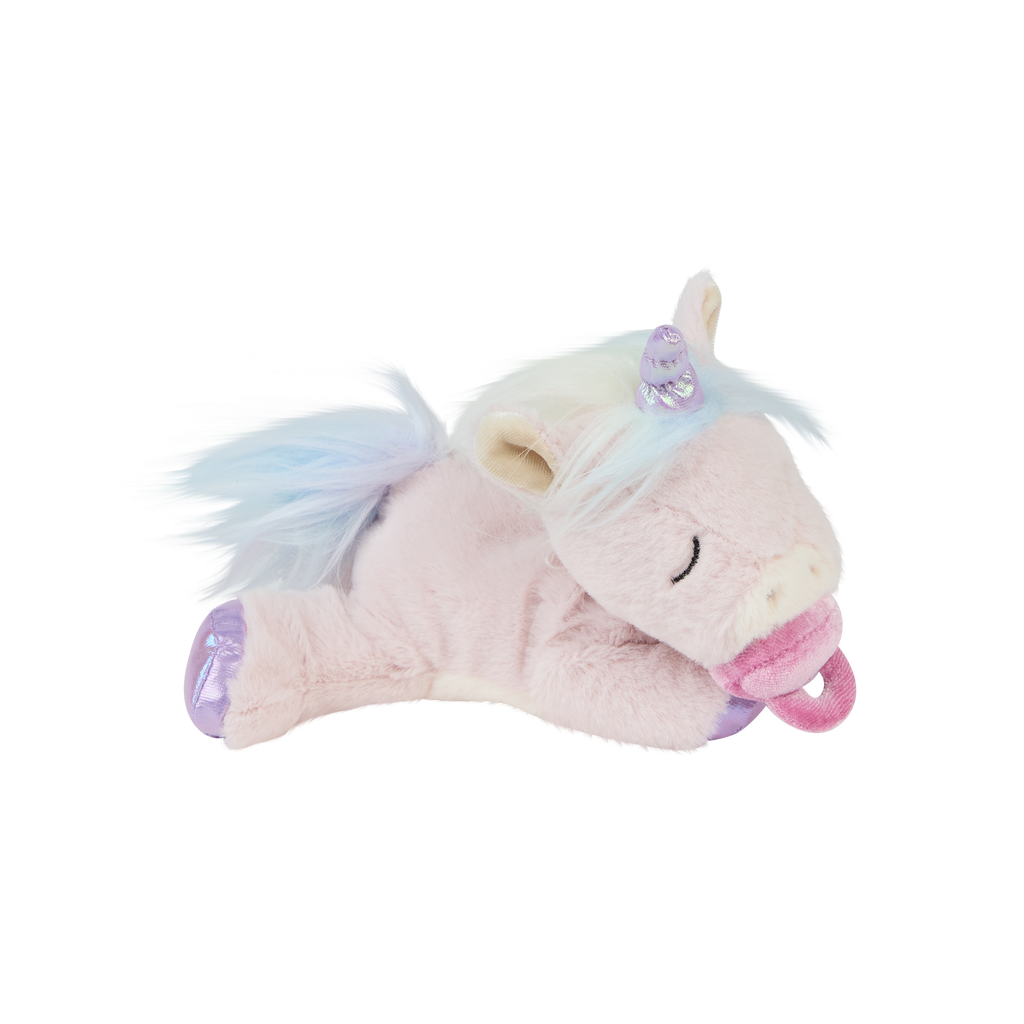 Unicorn Baby Sparkle in Pink, the tiniest and most magical member of the Unicorn collection and the perfect companion for your Dinkum Unicorn! With soft pastel fur and a twinkling pink horn, Baby Sparkle is as sweet as can be. This baby unicorn features a magnetic mouth to hold a dummy, and a magnetized neck to be lovingly carried by the Dinkum Unicorn. Perfect for cuddles and imaginative play, Unicorn Baby Sparkle adds an extra dash of magic to your little one's adventures, from enchanted naps to rainbow-filled tea parties!