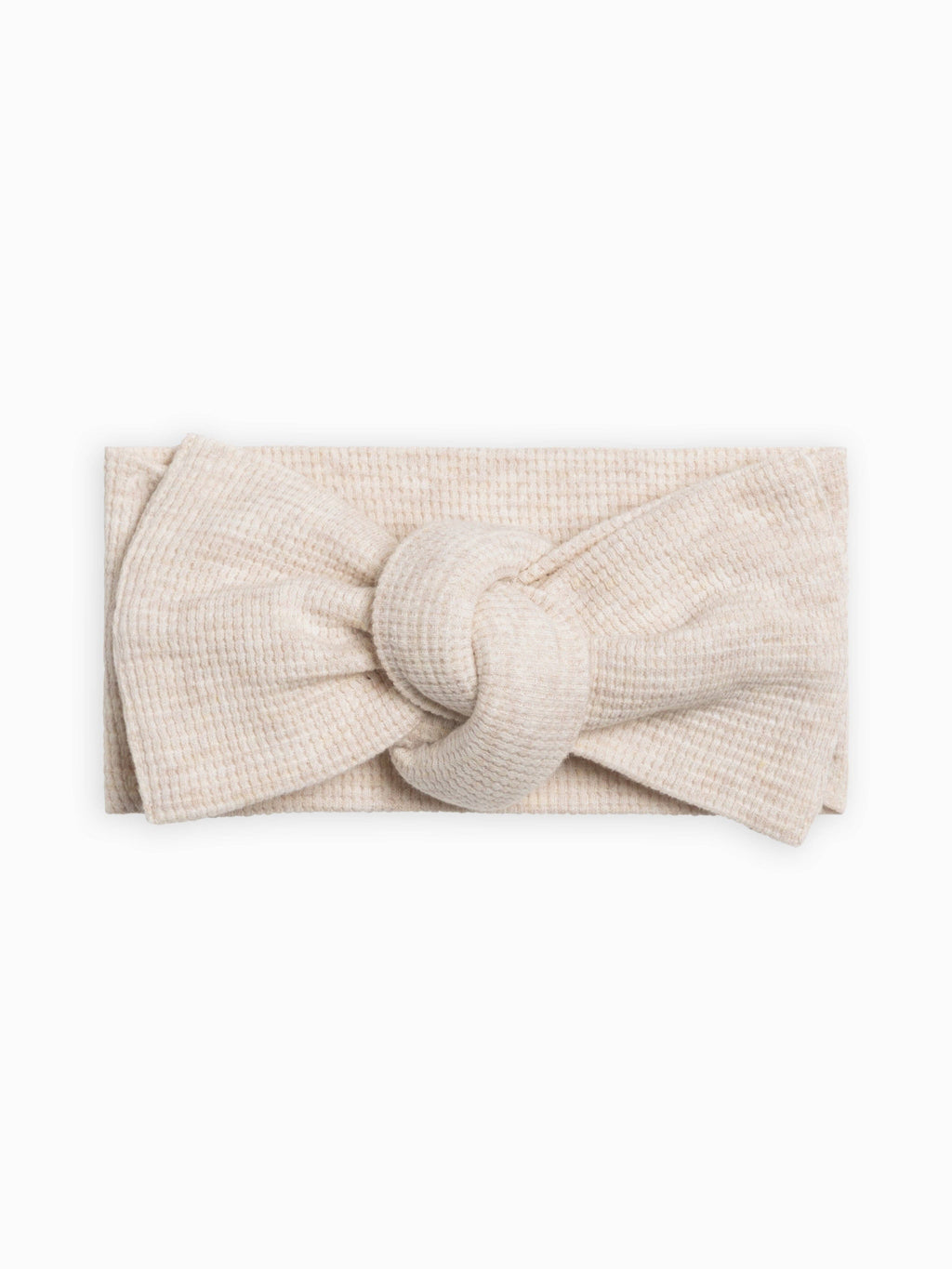 Product images shown are digital renderings. Final colors, textures, or details may vary slightly. Every adorable outfit needs the perfect accessory! This adjustable tie bow wrap made from organic waffle knit fabric is the perfect accessory to elevate any outfit, without being itchy or irritating to your baby's precious head.
