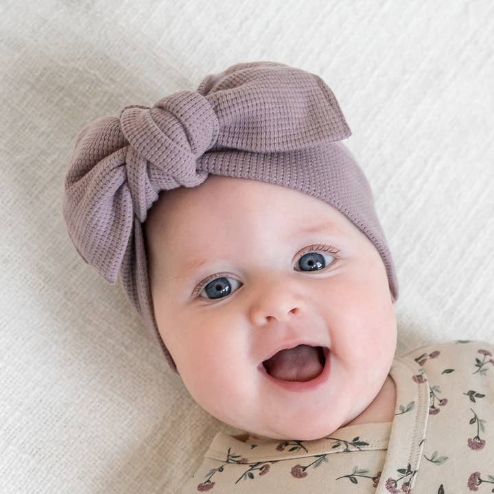 Product images shown are digital renderings. Final colors, textures, or details may vary slightly. Every adorable outfit needs the perfect accessory! This adjustable tie bow wrap made from organic waffle knit fabric is the perfect accessory to elevate any outfit, without being itchy or irritating to your baby's precious head.