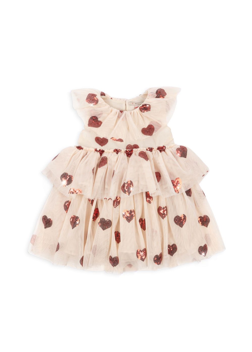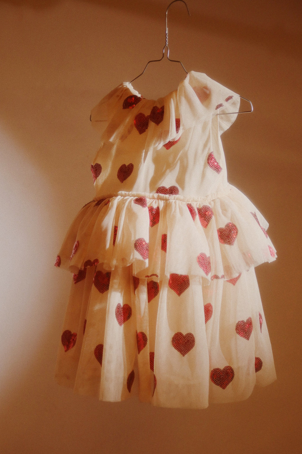 Put your heart on full display for Valentine's Day with our classic Yvonne Fairy Dress in a special Valentine's edition. Designed with a voluminous tulle skirt and short tulle sleeves. Lined with soft cotton.