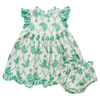 Meet the Cynthia Dress Set—where charm meets comfort! This adorable Kelly green dress is sprinkled with delicate eyelet details that catch the light beautifully. Scalloped embroidered edges dance along the hem and sleeves, while a sweet ruffle neckline adds extra personality. Made from soft cotton and fully lined for all-day wear, it's perfect for playdates and picture days alike. Plus, the matching diaper cover with its pretty white satin bow completes the precious package.