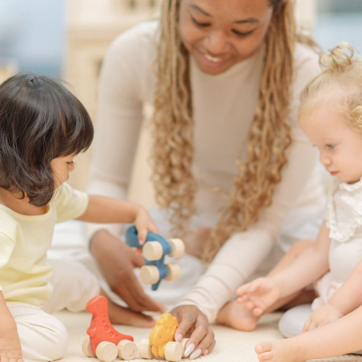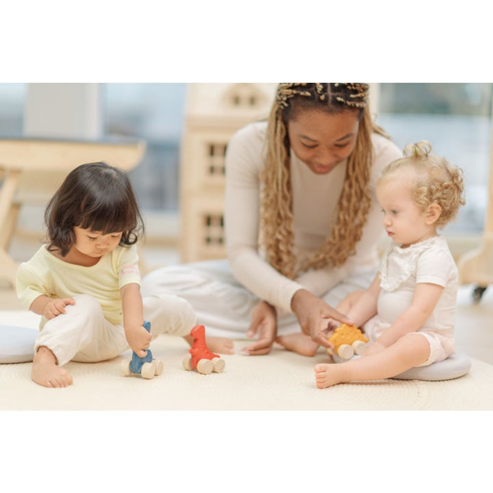 This red Tyrannosaurus 'Rex' dinosaur car develops fine and gross motor skills through grasping, pushing, and pulling. It enhances hand-eye coordination, muscle strength, and understanding of cause and effect, while encouraging exploration and imaginative play. Collect them all: Rex, Diplo, and Stego.