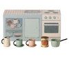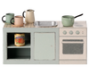 The small kitchen counter comes with 2 cups and 2 plates, a pot and a pitcher and a small can. The small sink is made of metal to look as real as possible. It fits perfectly into the kitchen in the SuitCasa mouse house.